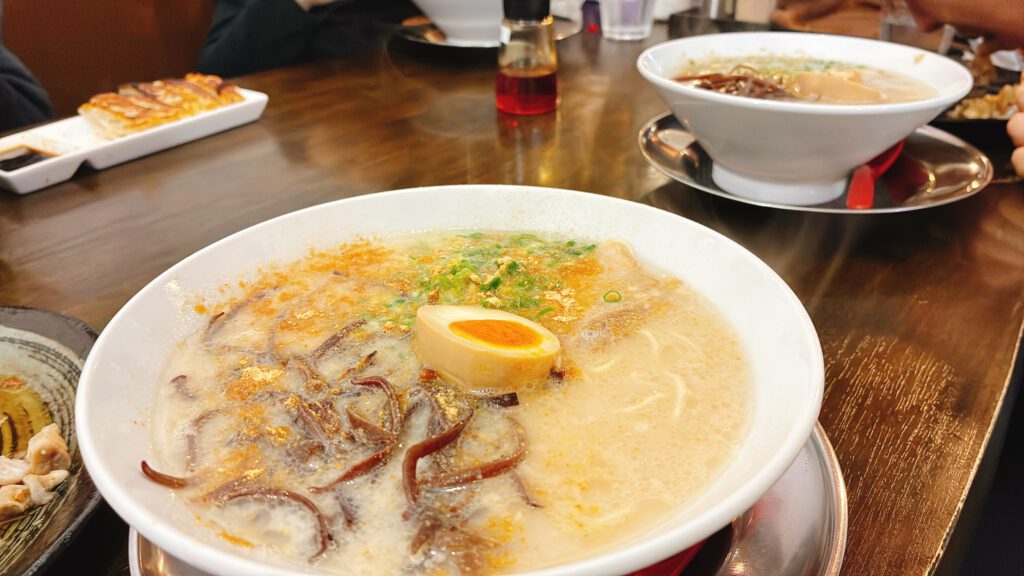 濃厚なスープと焦がしニンニクの香りが食欲をそそります。
