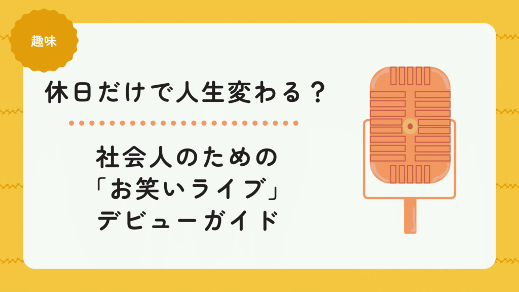 残業続きでボロボロだった私を救ったのは、1時間の爆笑でした。実体験に基づく「お笑いライブ」の魅力と、初心者向けデビューガイドです。